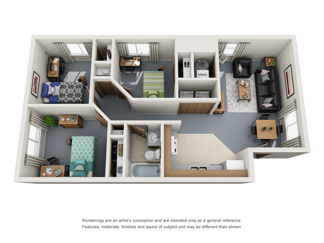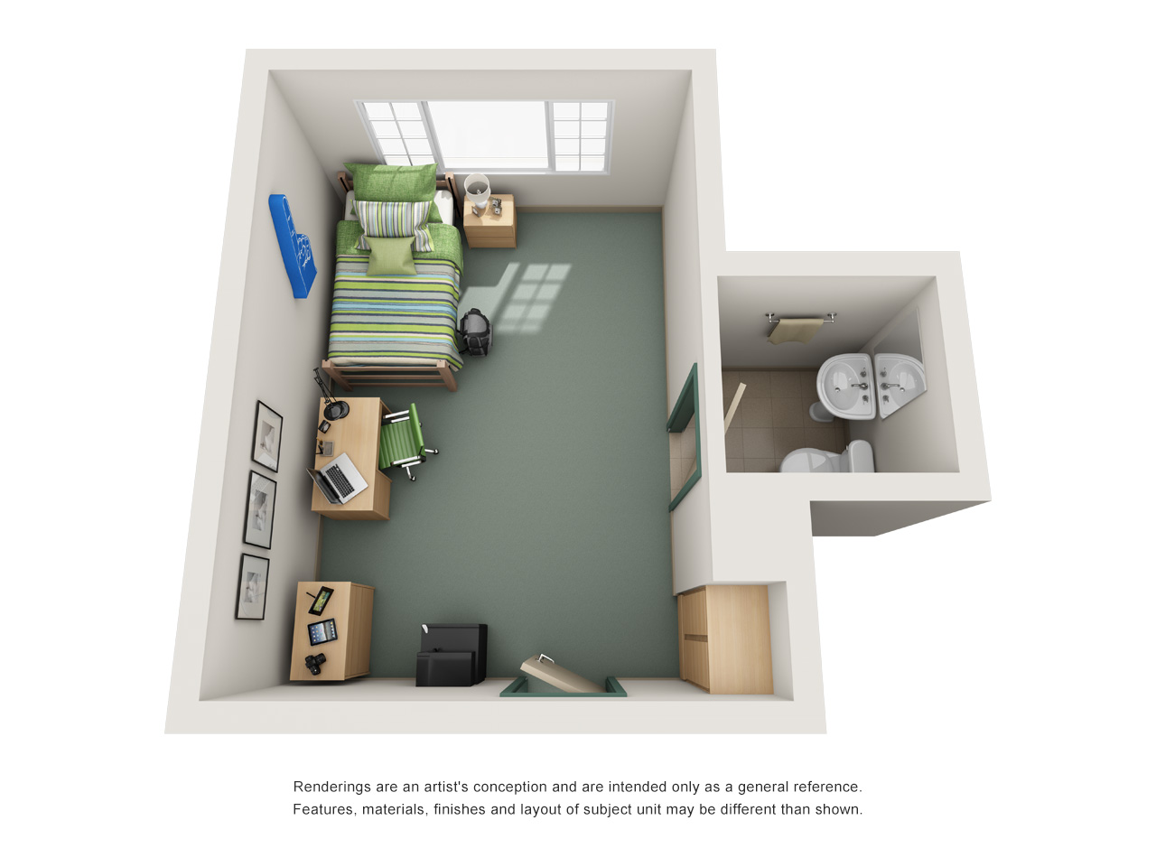 Single students have a choice of dorm living or sharing an apartment.